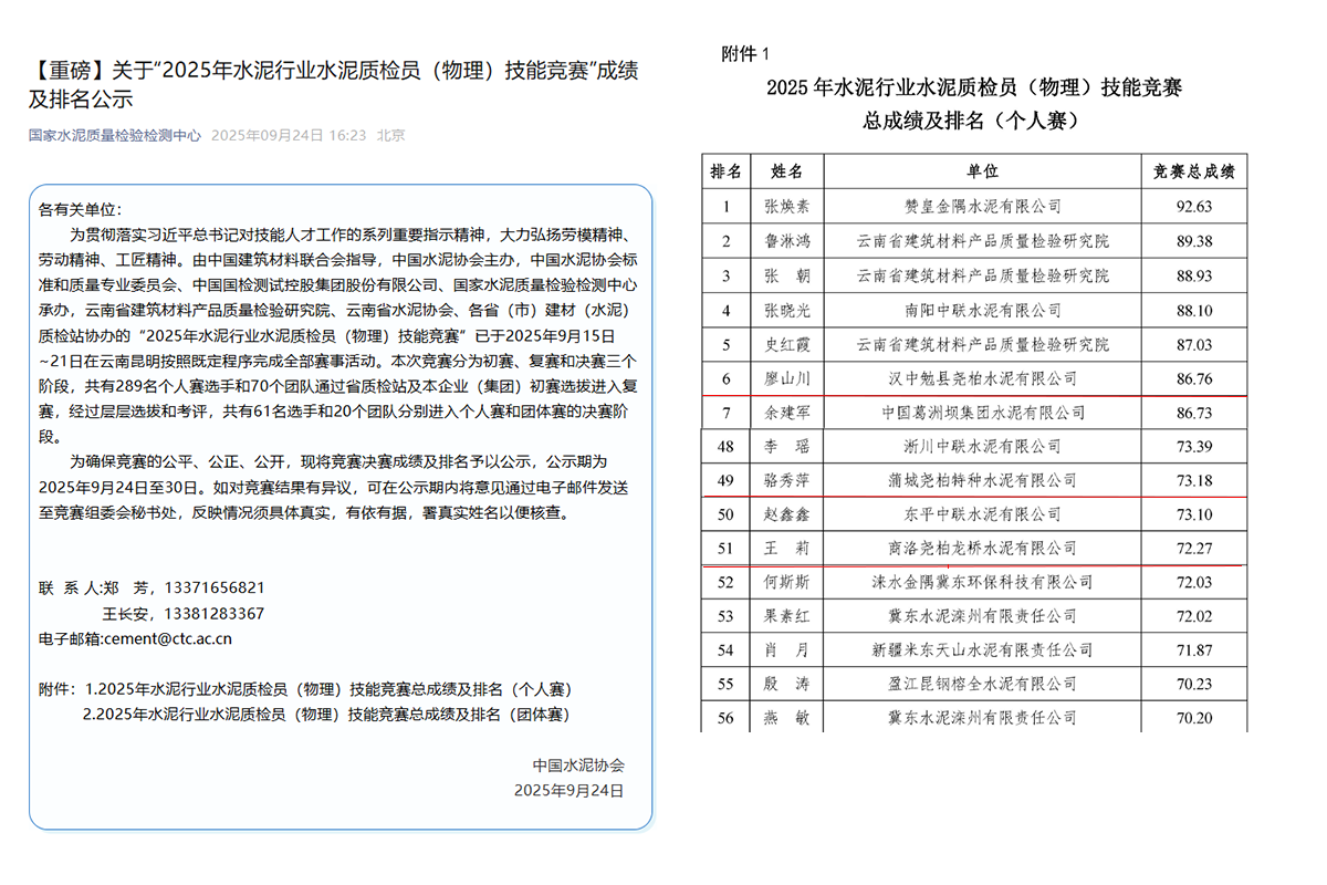 2025水泥質(zhì)檢技能競(jìng)賽收官 堯柏集團(tuán)斬獲多項(xiàng)佳績(jī)
